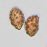 Lemon shaped, densely verrucose, 12-16 x 6.5-9μm.
